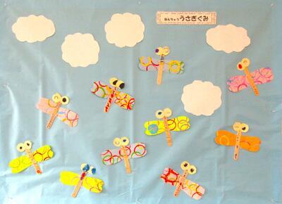 年中うさぎぐみ トンボのはねは「スタンプ」をポンポンして作りました。